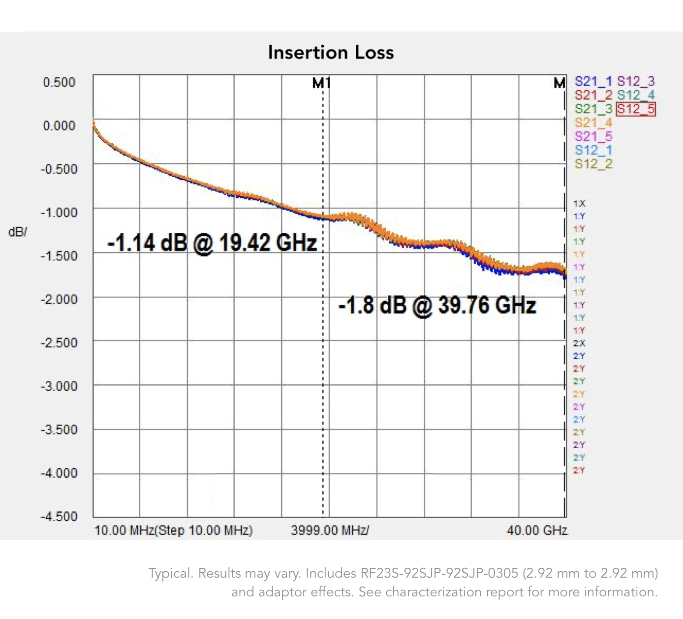 • Insertion Loss: See RF23S Graph