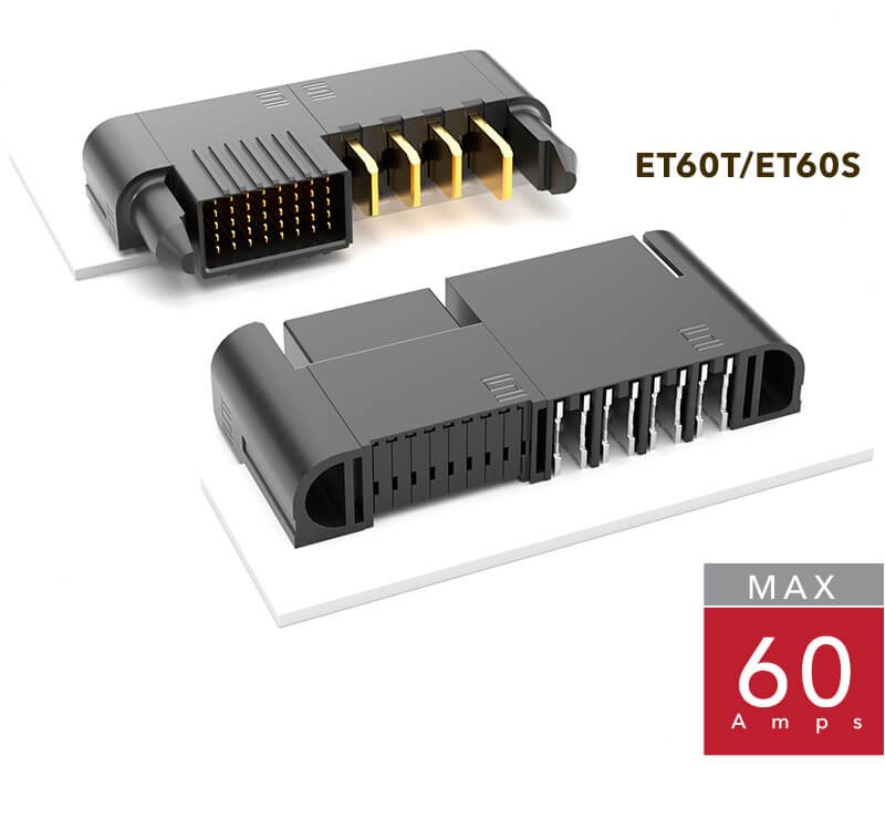 60 amp power connectors featuring a modular high power and signal combo for coplanar and right-angle board-to-board applications. Designed as a high-current and lower profile interconnect than existing connectors, EXTreme Ten60Power™ interconnects provide maximum current-to-length ratio packaged in a low 10 mm height housing that enhances airflow within the system.