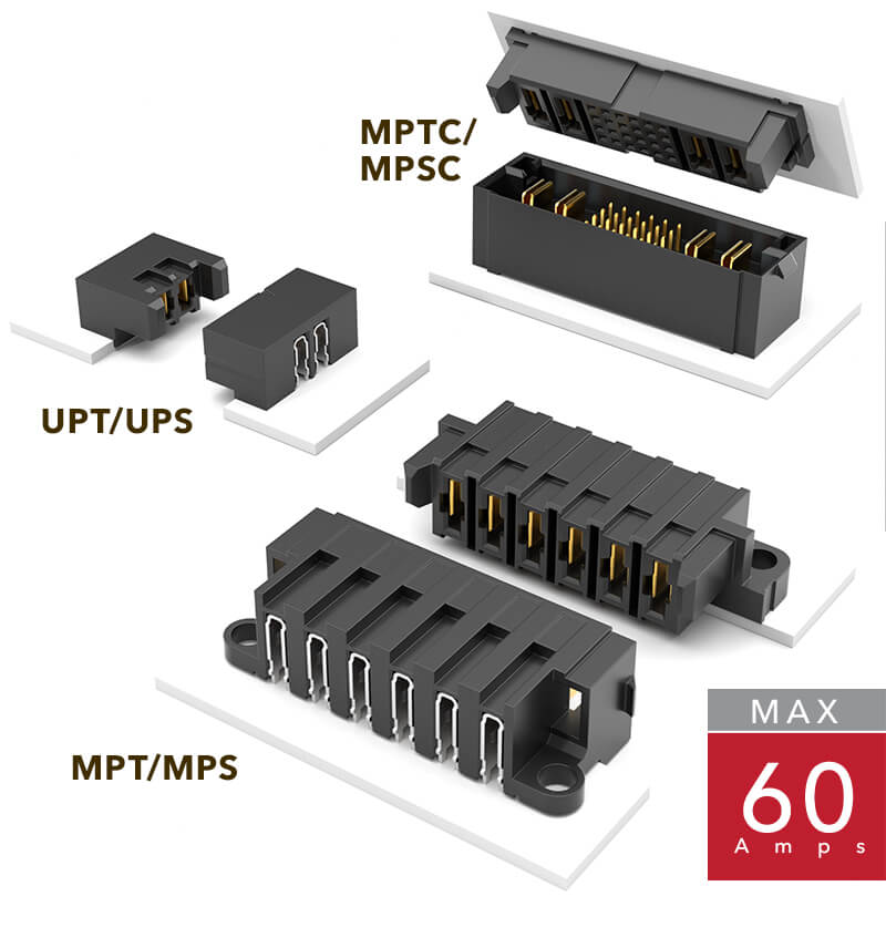 High-power systems for performance up to 58.7 A per contact.