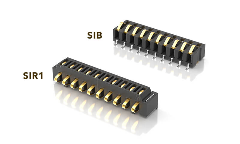 One-piece interconnects in vertical and right-angle designs with large contact deflection.
