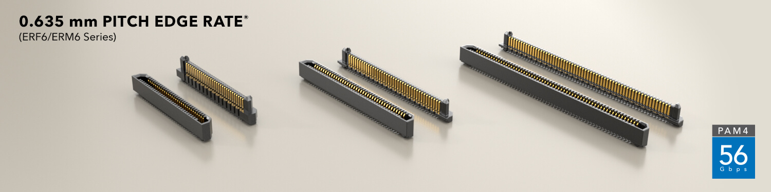 Generate® high-speed edge card sockets with differential pair Edge Rate® contacts for 64 Gbps PAM4 (32 Gbps NRZ) performance and PCIe® 6.0 capable.