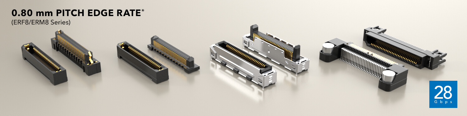 Generate® high-speed edge card sockets with rugged Edge Rate® contacts on a micro 0.80 mm pitch.