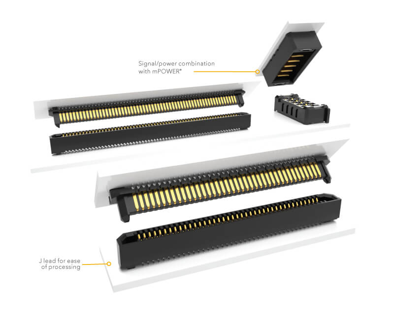 1.00 mm and .050" pitch one-piece interfaces for rugged and power applications.
